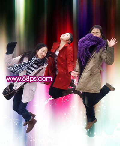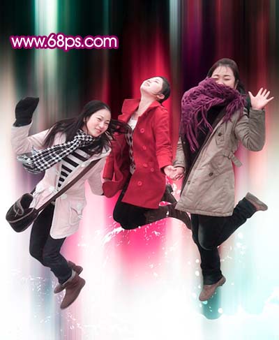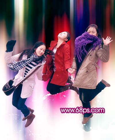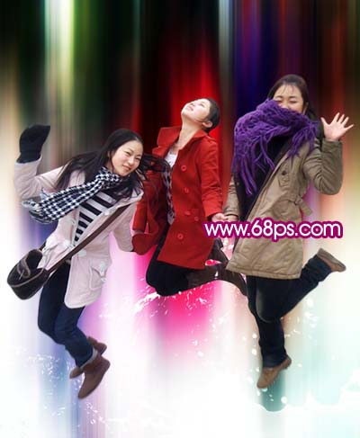 8、在人物下面新建一个图层,把前景颜色设置为白色,然后用画笔刷上一些喷溅笔刷,效果如图11。笔刷可以在本站下载。