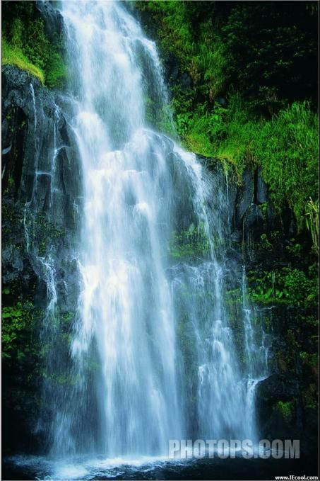 3、在瀑布图层上创建蒙版!将图层左侧的 山和树都擦掉!并调节图层的不通明度!把后边的城堡隐约的凸现出来!不通明度在80左右!效果如图!