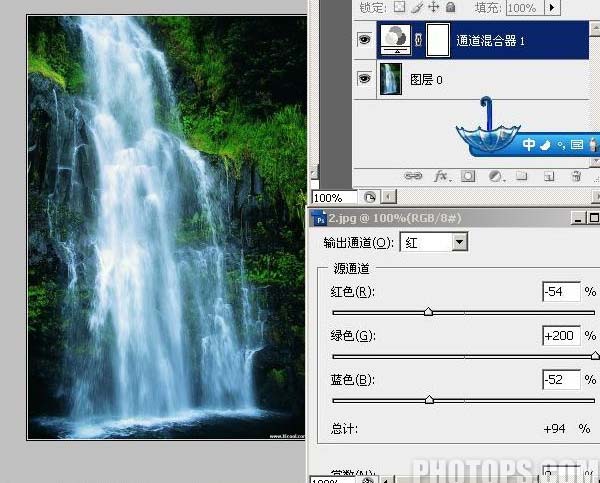 #p# 1、先打开这个素材然后创建通道混合器!数值如图设置。