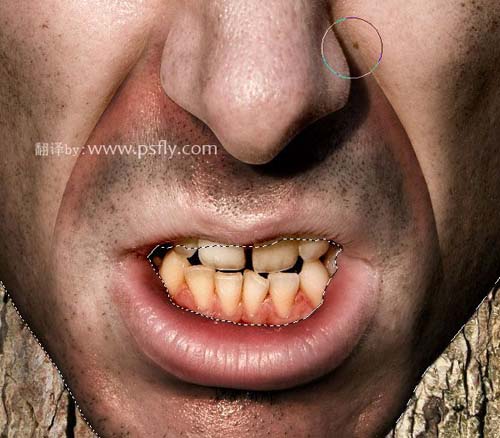 8、用钢笔工具把人物的牙齿,眼睛选择出来,并创建选区。