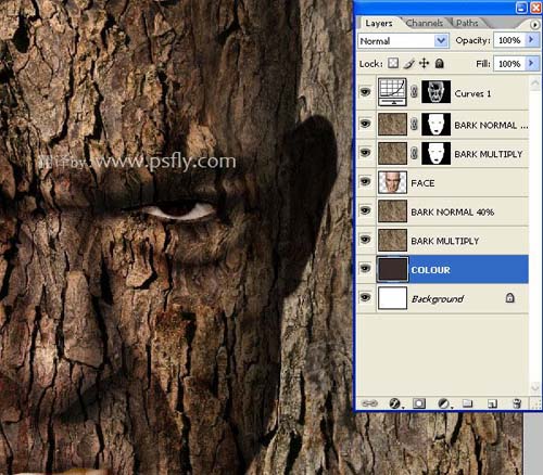 photoshop 合成恐怖的树皮脸