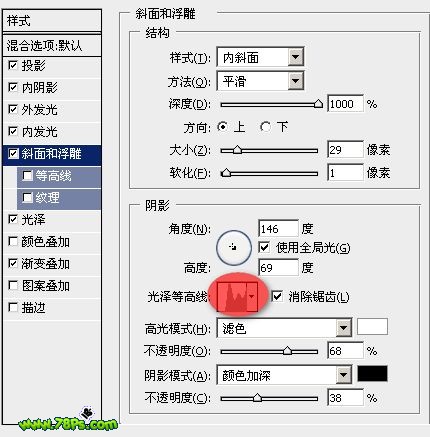 斜面与浮雕样式(注意等高线):