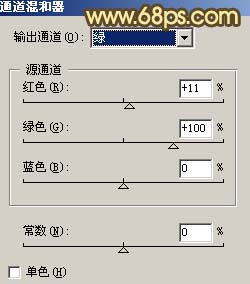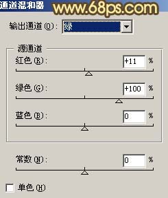 <图12> #p# 7、创建通道混合器调整图层,参数设置如图13,14,效果如图15。