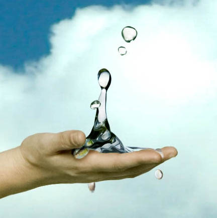 10、现在,让我们在女孩的手上加入一些更下降浮动水滴。并且使用照片滴有白色或蓝色的背景,以获得完美与我们背景重合。