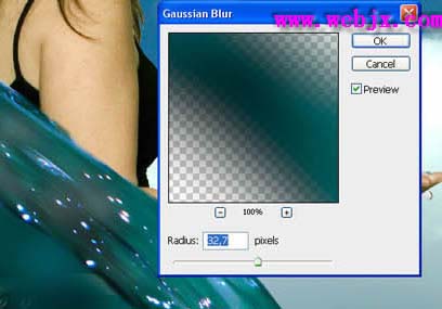 14、使水层下移的低,采用高斯模糊半径为32像素。现在,使用橡皮擦工具在删除模糊不属于全身的女孩。添加一些绿色和黄色图像“调整”色彩平衡,并最终改变种层由正常的柔和光线。