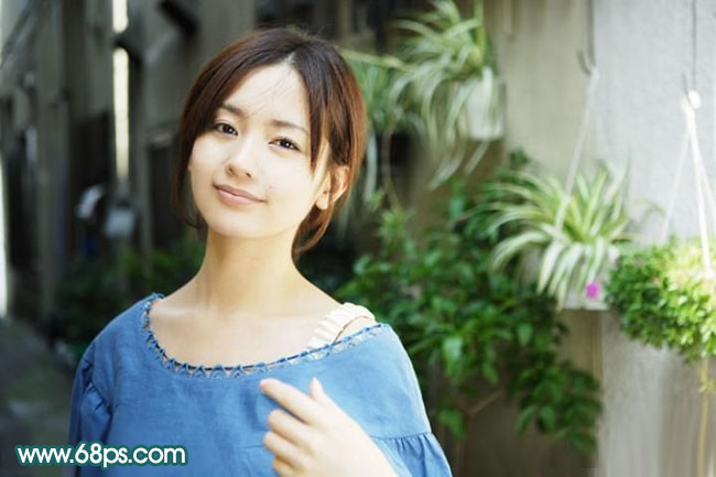 原图素材背景及人物色调有点沉。总体感觉不太自然。处理的时候可以把背景及人物肤色分开来调。如背景中的绿植可以调得更绿,人物肤色可稍微调红一点。也可以按照自己喜好调成不同颜色。