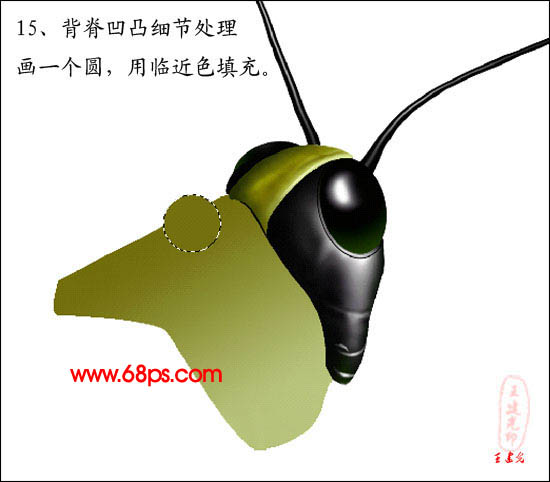 15、背脊凹凸细节处理,用椭圆选框工具画一个圆,用临近色填充,如下图。