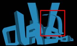 6、取消选择, 再选矩形选框工具对好位置, 把字母断缺的两边补上: