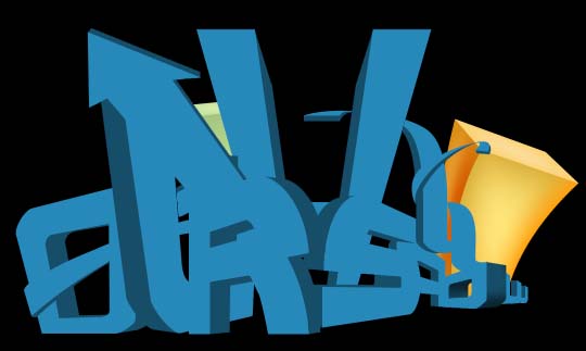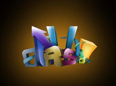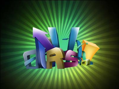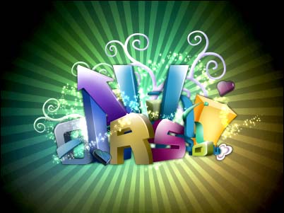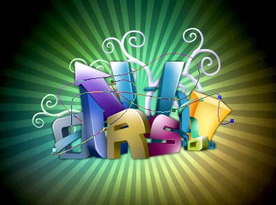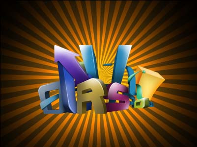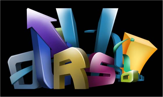 本教程效果图构成有点复杂。不过分开来制作就没有那么麻烦。主题部分还是立体字效果的制作,文字需要一定的透视效果,制作的时候需要适当把文字变形处理。背景及其他装饰可以使用相关的笔刷来完成。