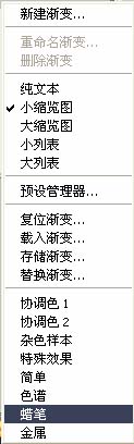 #p# 57、这个是系统默认的渐变样式,添加方式为:渐变工具, 画布内点击右键出现样式仓库, 点选右上角的三角箭头出现下拉选单,选择蜡笔。