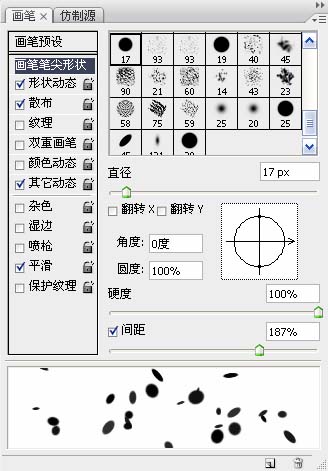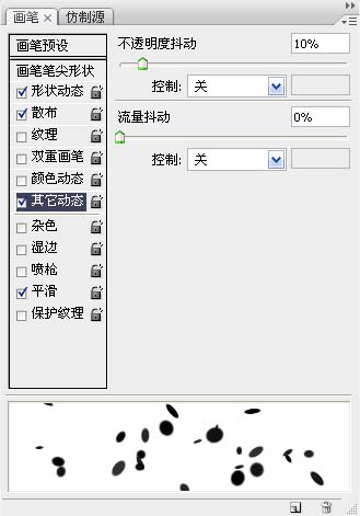 65、再继续添加元素。烟民想要的是一些闪闪发光的萤火虫环绕在文字周围,让文字显得更加炫彩夺目。那这里给出小亮点的制作方法。设置前景色为白色。选择画笔工具, 画笔不透明度100%,打开画笔设置选项。
