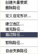 68、在钢笔工具下按住ctrl在空白的地方点一下左键,取消对路径的选择, 放开ctrl, 再右键, 下拉菜单中选择描边路径。