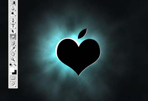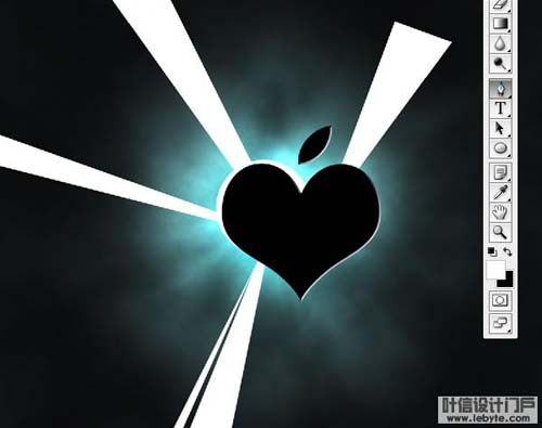 6、建立一个新的文件夹称其为:光线,然后移动它到心形背后。在此光线中,选择椭圆工具画一个圆形让其能差不多全部在心形背后,用钢笔工具,画一些可以成为光线的形状。保证所有的物体都在光线文件夹里。