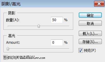 5、现在变换到我想要的颜色,选择图层-合并图像,将三个图层合为一层。 然后选择图像-调整-阴影/高光(阴影:50%、高光:0%)。