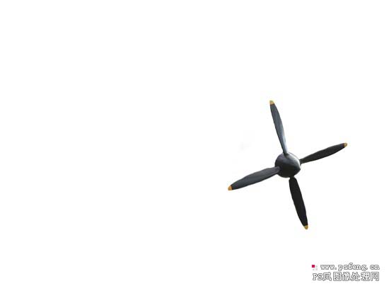 4、为了使飞机有动感,我们现在要做的就是让它的螺旋桨转动起来,显然我说的是视觉上的动感,而不是真的动起来。要做到这一点,我们首先必须复制飞机层然后提取螺旋桨。具体操作按Ctrl+J复制飞机层,并移到顶层,然后用钢笔或套索工具选出螺旋桨,反选后删除机身。为了方便浏览,我们可以先隐藏下面的飞机层。