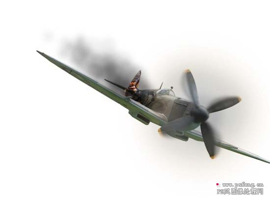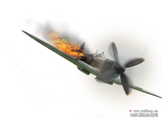 photoshop 合成燃烧后正在坠毁的飞机