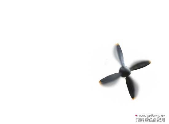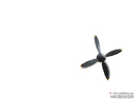 4、为了使飞机有动感,我们现在要做的就是让它的螺旋桨转动起来,显然我说的是视觉上的动感,而不是真的动起来。要做到这一点,我们首先必须复制飞机层然后提取螺旋桨。具体操作按Ctrl+J复制飞机层,并移到顶层,然后用钢笔或套索工具选出螺旋桨,反选后删除机身。为了方便浏览,我们可以先隐藏下面的飞机层。