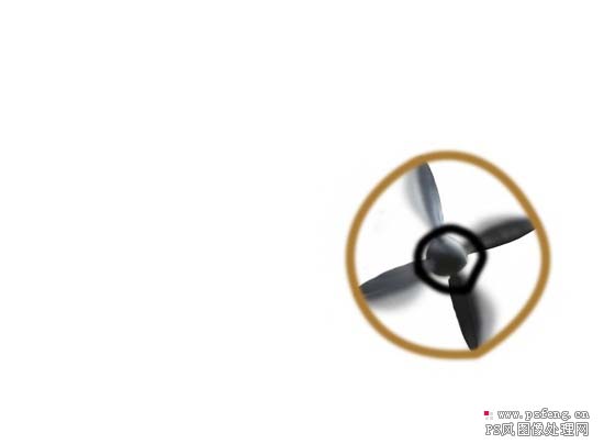 7、为了渲染出我们想要的气氛,我们还要给螺旋桨增加一些烟雾效果。新建一层,然后选择画笔工具,硬度0%,直径约10px,绕螺旋桨画出一个黑色的圈和一个棕色的圈。