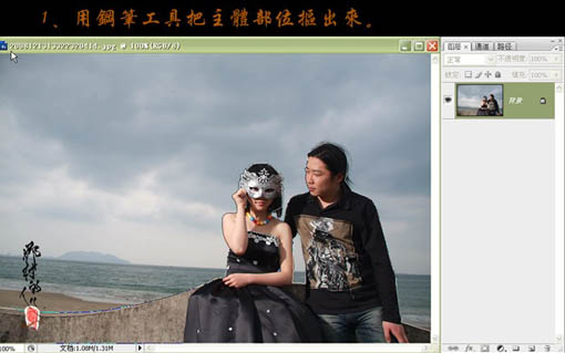 1、打开原图素材,用钢笔工具把主体部分抠出来,如下图