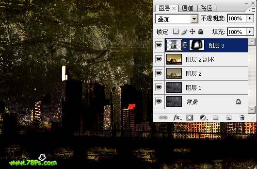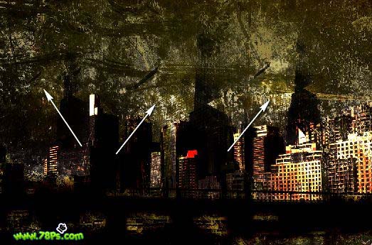 本教程合成效果有点另类。整个画面光线比较暗,在散乱的纹理下透露出绚丽的都市灯光。给人一种压力凄凉的感觉。估计这也是作者特意想表达的设计意图。制作的过程中用到的素材比较多,处理的时候需要注意好整体颜色的调整和细节的处理。