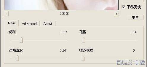 6、按CTRL+SHIFT+ALT+E对所有图层执行盖印操作。再对这个图层使用TOPAZ滤镜,参考数值如下,确定后完成最终效果。