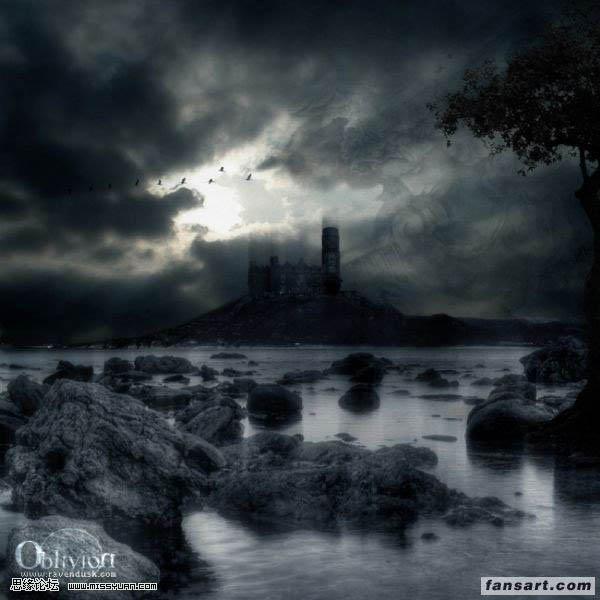 如何使用Photoshop制作从云梯走进书本中的奇幻森林场景