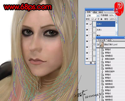 10、为了另头发更真实,我又多加了一层,模拟压力描边为白色。