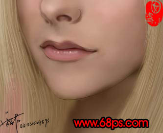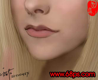 12、嘴部,先用模糊工具顺着嘴的走向来回轻涂。