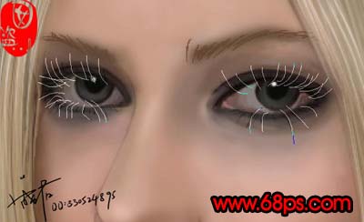 15、眼睛部分,先描出眼捷毛路径,模拟压力描边,黑色。