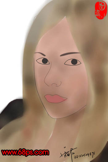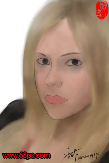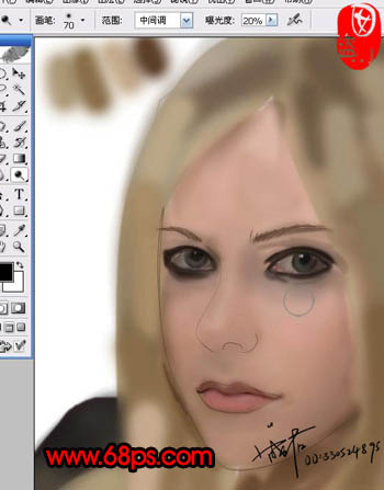 #p# 5、继续用加深/减谈工具涂出五官大体。涂抹工具在头发上面轻扫一层。