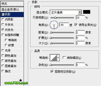 3、选中花朵图层,添加图层样式,执行图层--图层样式--混合选项: 投影