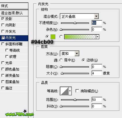 内发光,颜色#94cb00:
