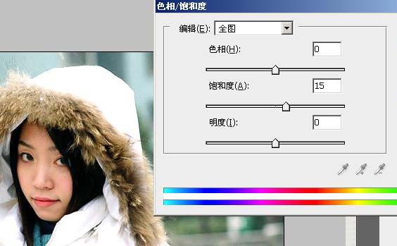 7、这时候的照片已经很好看了,只是显得非常苍白,所以我们再加一个色相/饱和度调节层,并且+15的饱和度。