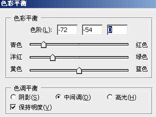 11、改变云彩的颜色为蓝色,选中云彩图层,按CTRL+B调整色彩平衡。