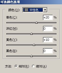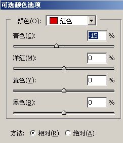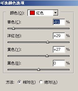 #p# 3、再次复制背景图层,得到一个新的图层在背景图层上面,选中该图层,执行可选颜色(图像--调整--可选颜色)分别调整红色、黄色、中性色,方法为相对。