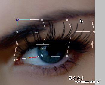 3、用魔术棒把睫毛抠出来,然后拖进需要的部分,放好合适位置,执行:编辑 > 变换 > 变形。