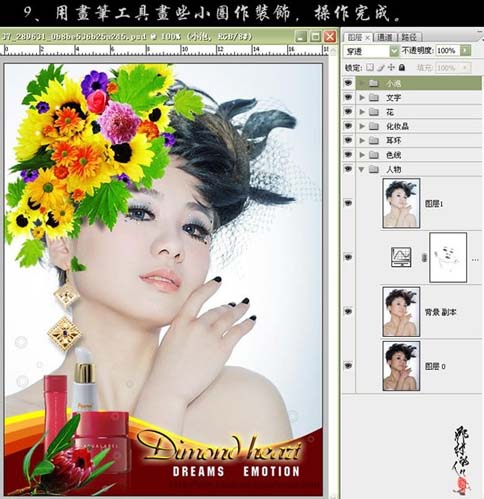 #p# 7、用花素材加上头饰,大家可以去网上下载相关的鲜花素材。