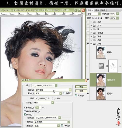 #p# 1、打开原图素材,按Ctrl + J把背景复制一层,执行:图像 > 应用图像,参数设置如下图。