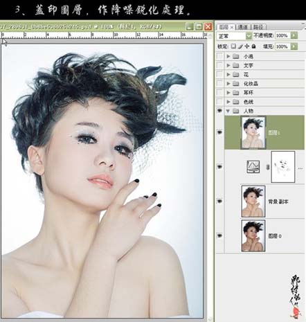 #p# 3、新建一个图层,按Ctrl + Alt + Shift + E盖印图层,做降噪及锐化处理。