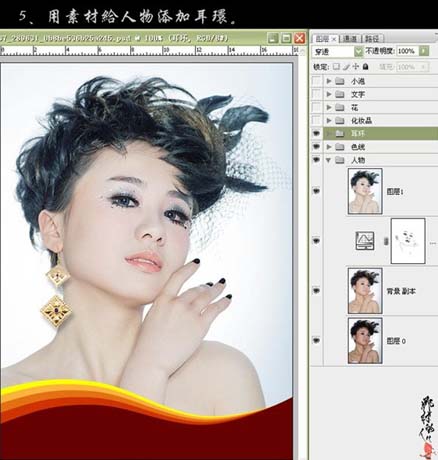 #p# 5、用素材给人物加上耳环,可以去网上找相关素材,没有的话可以跳过。
