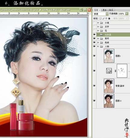 6、加上化妆品素材。
