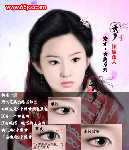 #p# 8、用钢笔画出路径如下图,开始制作双眼皮,方法如下图所示。