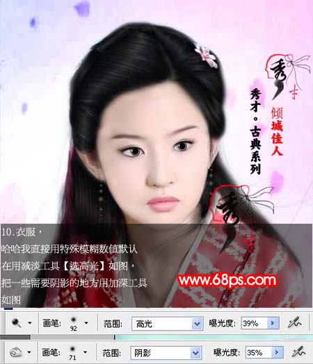 #p# 10、衣服用减淡工具擦高光,如图。