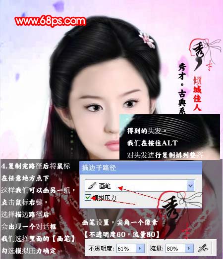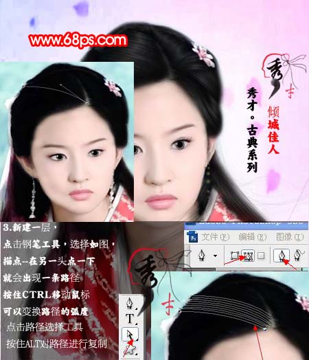 #p# 3、新建一个图层,选择钢笔工具,然后开始画头发的路径,然后按住Ctrl + Alt复制路径。