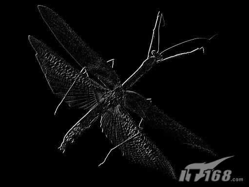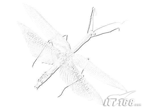 <图14> #p# 13、复制昆虫图层,恢复图层的透明度和混合模式,隐藏除该图层和背景层以外的图层。 14、切换到通道面板,复制蓝色通道为蓝色通道副本。执行菜单栏中的“滤镜”→“风格化”→“浮雕效果”命令,设置角度141,高度1,数量150,效果如图15所示。