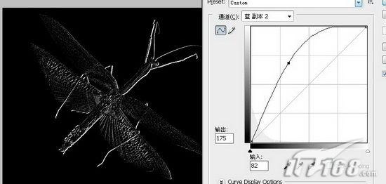 <图17> #p# 17、再复制蓝通道副本层,执行菜单栏中的“图像”→“调整”→“色阶”命令,用黑色吸管吸取图中的灰色。执行菜单栏中的“图像”→“调整”→“曲线”命令,设置同上,效果如图18所示。