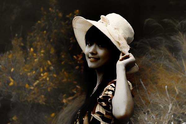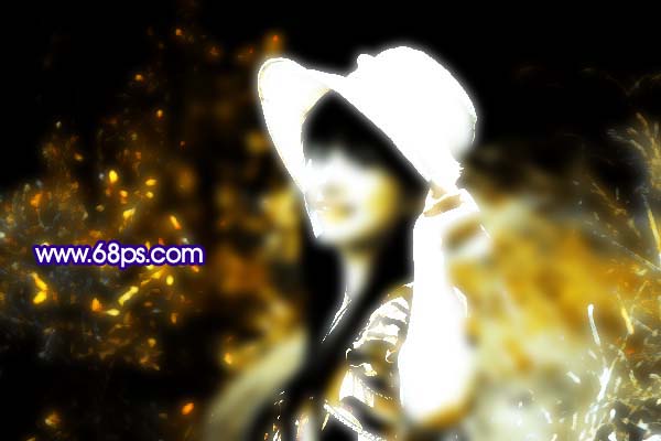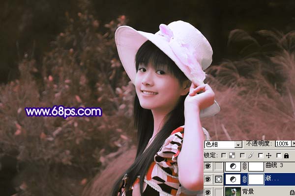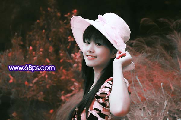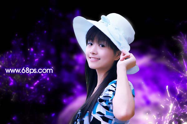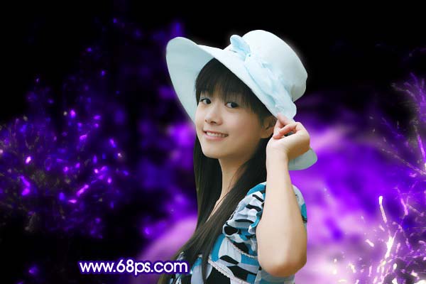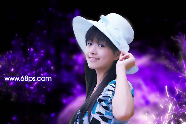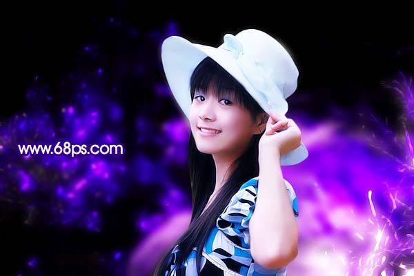 原图素材背景部分比较暗,比较适合做梦幻效果。简单思路:把背景部分模糊处理后调成自己喜好的颜色,然后调整人物的颜色,色彩可以按照自己的喜好调整。最后装饰一些梦幻元素即可完成效果。