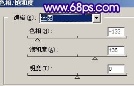 7、创建色相/饱和度调整图层,参数设置如图16,效果如图17。