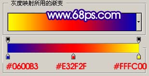 #p# 1、打开原图素材,创建渐变映射调整图层,参数设置如图1,确定后把图层混合模式改为“色相”,效果如图2。
