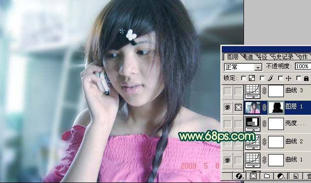 <图7> #p# 4、再在曲线调整图层上面创建亮度/对比度调整图层,参数设置如图8,效果如图9。
